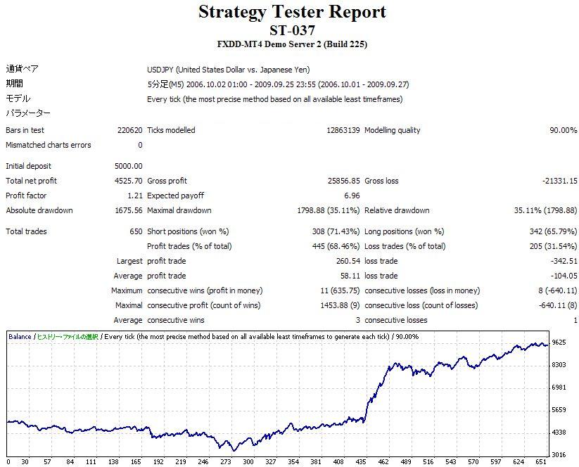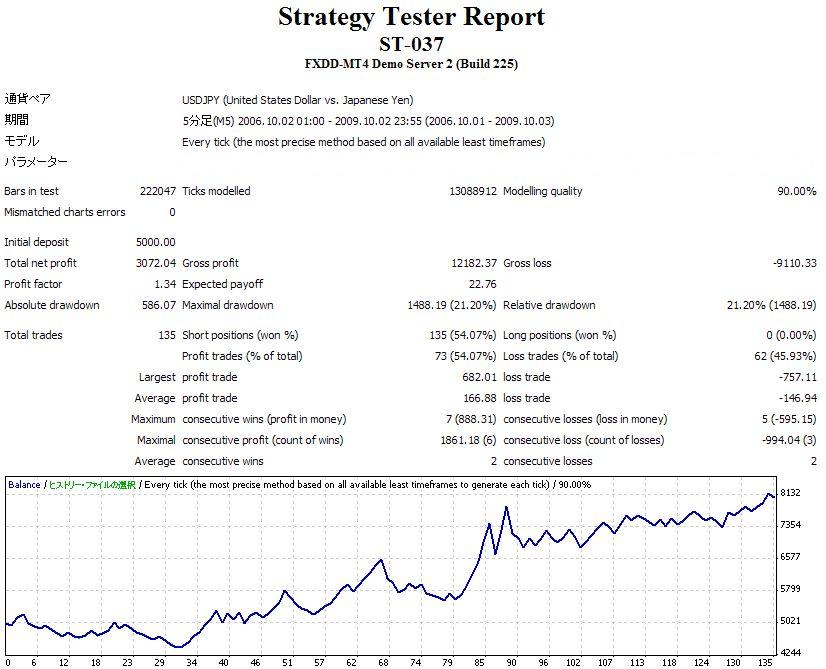 昨日紹介した新インディケーターを使ったEAで検証してみた。