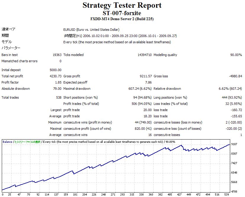 初のトレンド系として作ったが、鳴かず飛ばず。最適化期間以降は、資産残高の更新もなかったようだ。