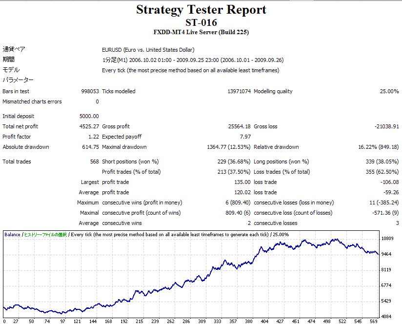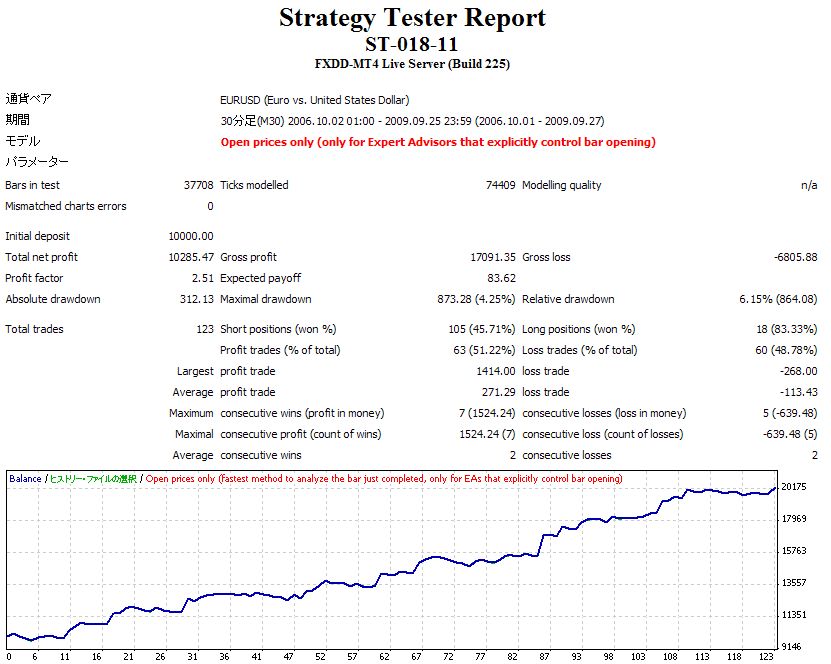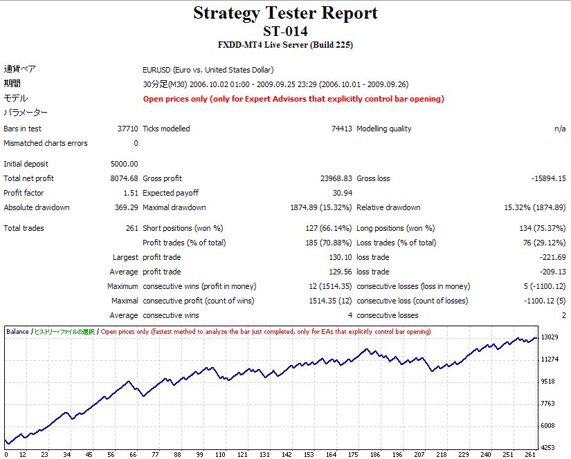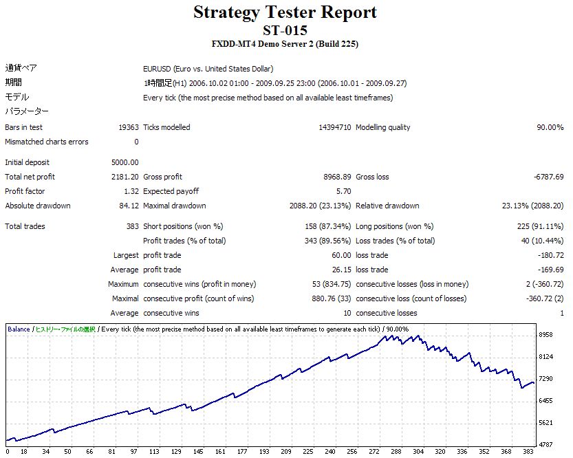 過去に最適化で作成したセットアップファイルで、EAをテストしてみた。
