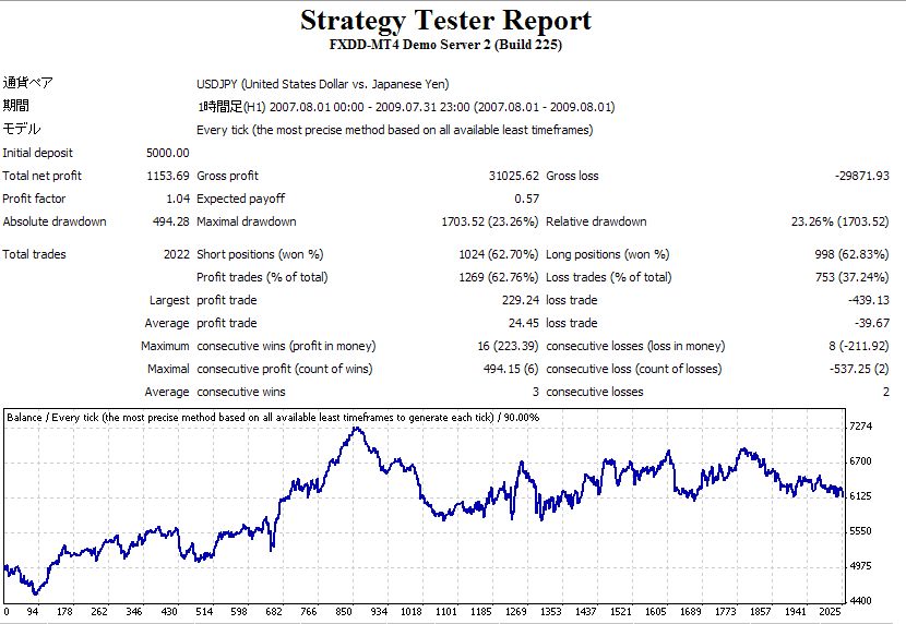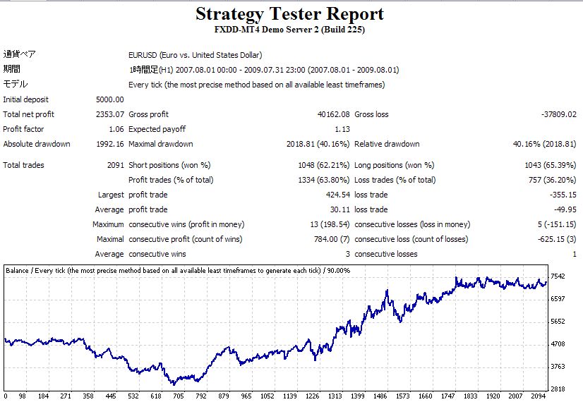 過去に最適化で作成したセットアップファイルで、EAをテストしてみた。