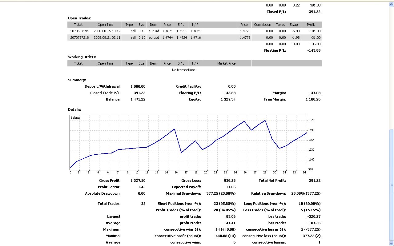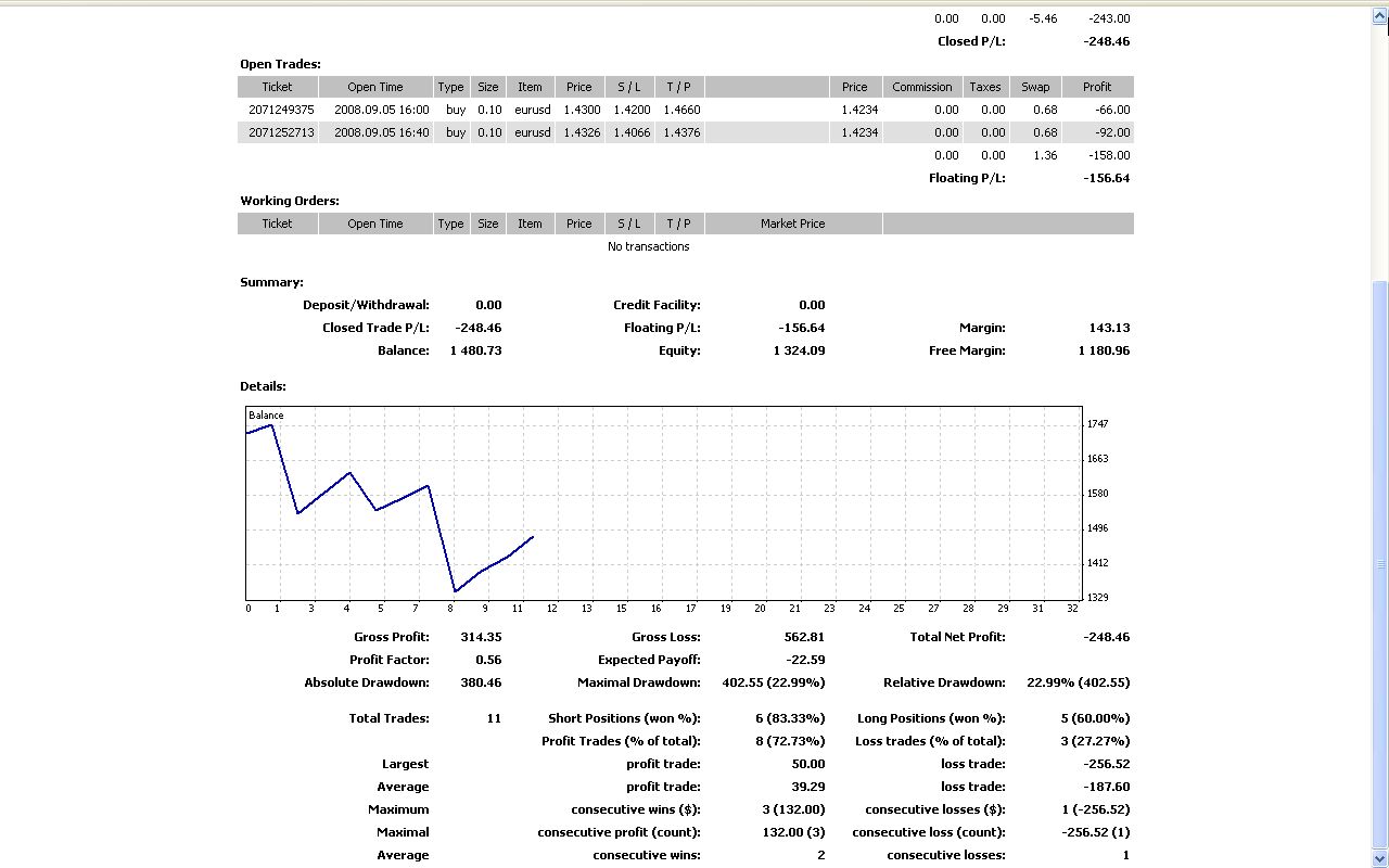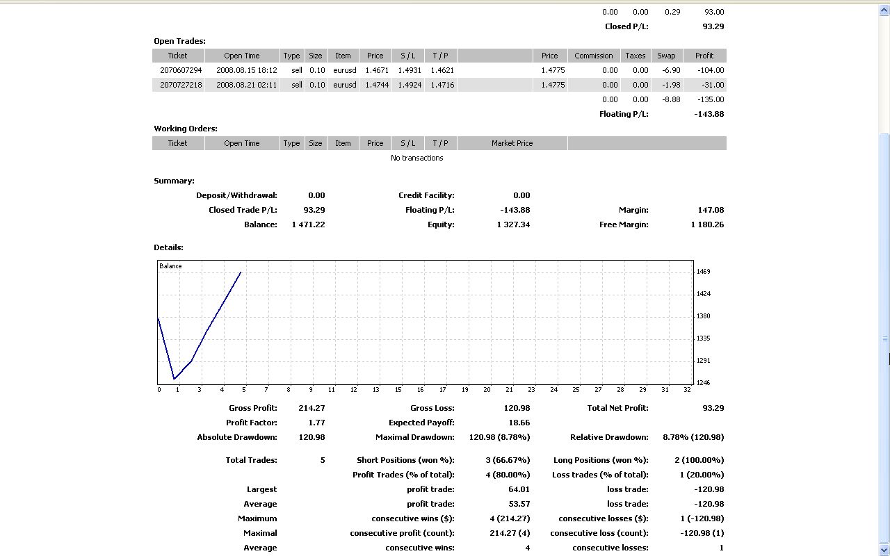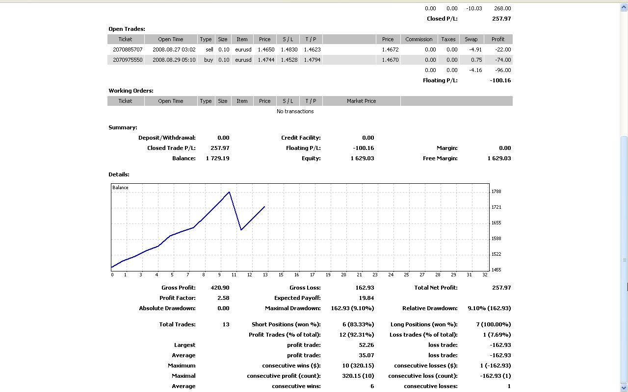 Alpariデモ取引状況