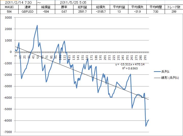 トレード数が少なく、負けpipsが大きかった。