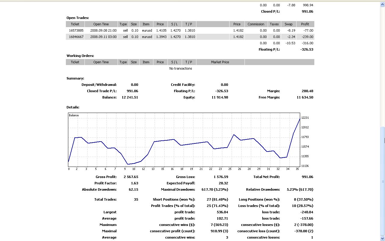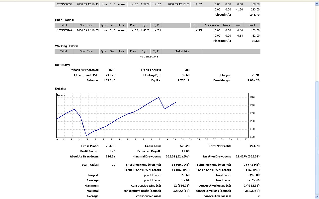 Alpariデモ取引状況